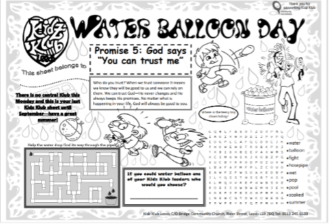 Once your child is signed up to kidz Klub (and providing they live in an area we cover) they will receive a visit weekly in termtime – usually between 3.30pm and 7pm on weeknights. Our volunteers come out in pairs, and will knock on your door and give your child an activity sheet (example below) which details any activities which they can access that week.